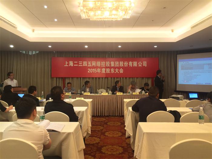 上海二三四五網(wǎng)絡(luò)控股集團股份有限公司(以下簡稱“公司”)第六屆董事會第一次會議于2016年5月18日下午在上海市肇嘉浜路777號青松城大酒店4樓嵩山廳以現(xiàn)場和通訊表決結(jié)合的方式召開,本次會議通知于2016年5月11日以電子郵件方式發(fā)出。應(yīng)參加審議董事9人,實際參加審議董事9人。本次董事會由陳于冰先生召集并主持,符合《中華人民共和國公司法》和《公司章程》的有關(guān)規(guī)定,會議有效。