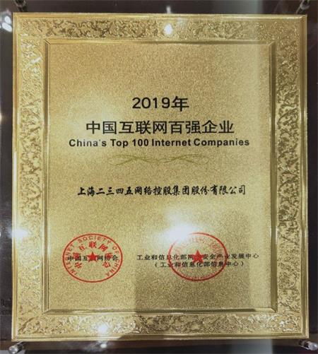 8月14日,中國互聯網協會、工業和信息化部網絡安全產業發展中心(工業和信息化部信息中心)聯合在北京發布了2019年“中國互聯網企業100強”排行榜,其中,上海二三四五網絡控股集團股份有限公司憑借強勁的綜合實力,已8年蟬聯中國互聯網企業百強稱號,榮譽的加持增強了二三四五戰略發展的動力與信心。